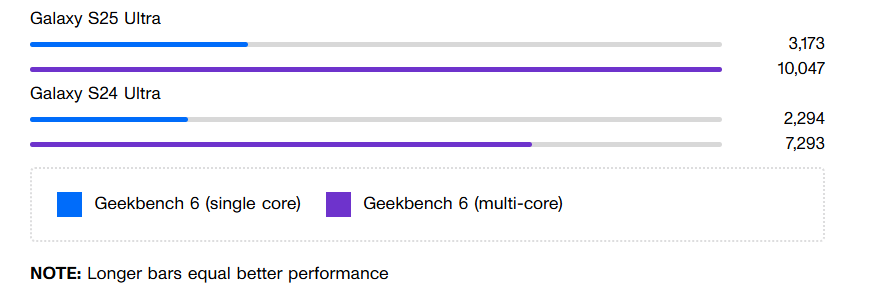 Về hiệu năng, S25 Ultra được trang bị Snapdragon 8 Elite còn Galaxy S24 Ultra dùng Snapdragon 8 Gen 3. Điểm benchmark của chip mới cao hơn khoảng 25% nhưng trong trải nghiệm hàng ngày, sự khác biệt này gần như không đáng kể.